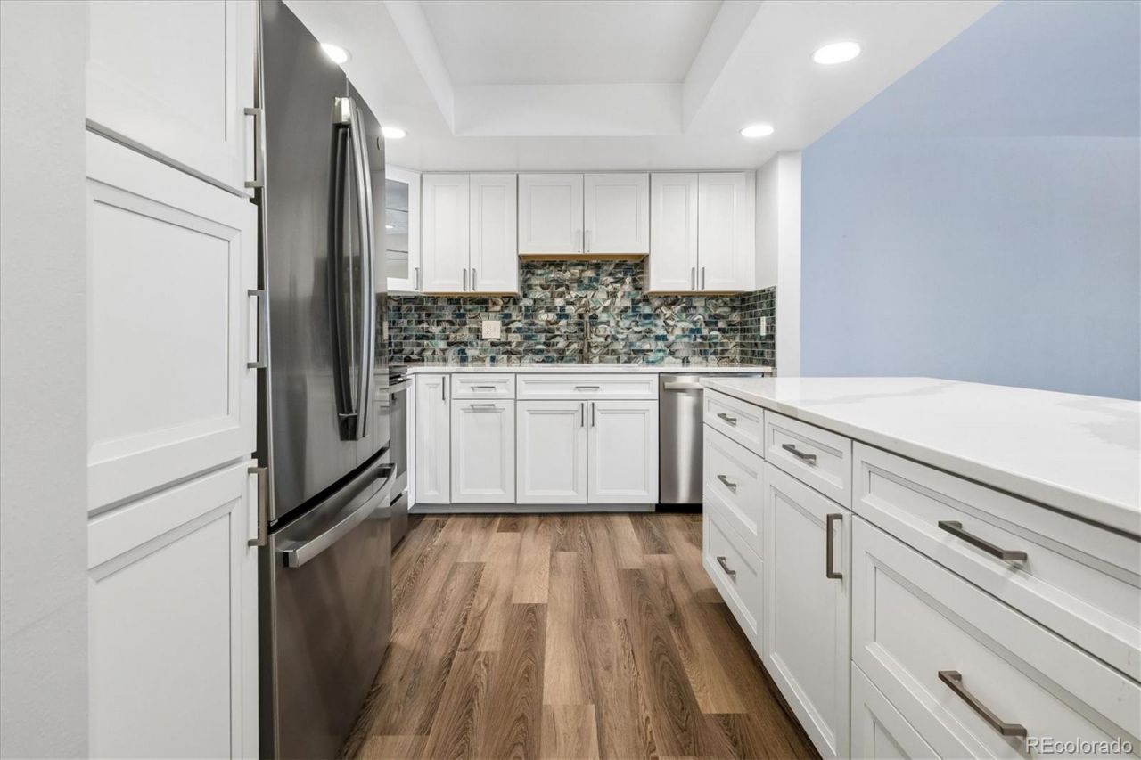 Refined Living | Designer Renovation | Premier LocationExperience elevated living in this exquisitely renovated, west-facing residence, perfectly positioned on an elevated first floor backing to a tranquil greenbelt. Ideally located just steps from the outdoor parking area, this home offers the rare combination of privacy, convenience, and effortless access?without the need for elevators.Inside, a sophisticated, contemporary design unfolds. The home has been meticulously reimagined, beginning with the removal of all popcorn ceilings?including the lanai?creating a clean, modern canvas throughout. At the heart of the home, the designer kitchen impresses with a generous island, custom cabinetry with soft-close features and pull-outs, elegant siltstone countertops, striking glass tile backsplash, and a suite of new appliances?crafted for both refined entertaining and everyday luxury.Every element has been thoughtfully curated, from the spa-inspired bathrooms with modern vanities and soft-close details to the rich blend of laminate and plush carpet flooring, custom millwork, and updated interior doors. Ambient lighting and a fresh, cohesive color palette enhance the homes sophisticated ambiance.Step into your enclosed lanai, finished with acacia wood flooring, offering a serene retreat to enjoy Colorados natural beauty in every season.Additional upgrades include a new, HOA-approved electrical panel (fully permitted), updated switches and outlets, and WiFi-enabled room air conditioning for modern comfort. The home is complete with underground parking featuring a cowboy lock and a conveniently located storage closet just down the hall.Located within Heather Gardens, Auroras premier 55+ community, residents enjoy an exceptional lifestyle with resort-style amenities, beautifully maintained grounds, and a vibrant social atmosphere.A rare opportunity to own a truly turnkey, designer residence in one of the communitys most desirable locations. Schedule your showing today!