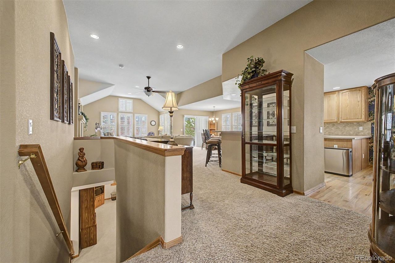 Experience effortless main-floor living in one of Auroras most coveted gated 55+ golf communities ? Heritage Eagle Bend. This impeccably cared-for ranch townhome spans 2,947 finished sq ft across 3 BD & 3 BA, pairing a vaulted open-concept main floor w/ a fully finished daylight basement that dramatically expands your living space. Sunlight pours through plantation-shuttered windows into a light-filled great room anchored by a natural gas fireplace, vaulted ceilings soaring overhead, & seamless flow into the chandelier-lit dining area & gathering-ready kitchen. Rich wood cabinetry, walk-in pantry, tile backsplash, double Stainless Steel sink, convection oven, warming drawer, & a sunny eat-in nook make the kitchen as functional as it is inviting. The main-level primary suite is a true retreat ? walk-in closet, plantation blinds, ceiling fan, & a private 3/4 bath w/ dual sinks & separate water closet. A second main-level BD & full bath welcome grandkids, guests, or a home office. Downstairs, the daylight basement opens to a spacious family room, a private 3rd BD w/ walk-in closet & wooden shades, a tile-floor 3/4 bath, & generous unfinished storage. Thoughtful systems ? radon mitigation, humidifier, sump pump, insulated & lighted crawl space, double pane windows w/ well covers ? deliver lasting peace of mind. The finished 2-car garage is insulated, dry-walled, lighted, & features storage cabinets plus a golf cart outlet. Outside, unwind on the covered front porch or patio surrounded by manicured landscaping & an HOA-approved Autumn Blaze Maple backing directly to greenbelt open space. HOA handles exterior maintenance, landscaping, snow removal, trash, security ? & next roof replacement is HOA-funded in 2039. Resort-style amenities: clubhouse, fitness center, golf course, pool, sauna, spa, tennis, garden & trails. Minutes to Southlands, dining & C-470.
